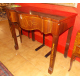 Consolle del sec. XIX, impiallacciata in legno di mogano ed intarsiata con serti di frutta e personaggi, un cassetto, fronte mosso. cm89x106x59 (mancanze all’impiallacciatura)