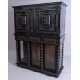 Importante monetiere in legno ebanizzato, due sportelli intagliati con volute vegetali, fasce guilloche e riquadri centrali con Atlante che sostiene la volta celeste e Apollo con lira da braccio, specchiature interne dipinte con Re Mida e Narciso in paesaggi classici, dieci cassettini e dodici riquadri dipinti con episodi mitologici di Atteone, Ercole, Giove, Andromeda, Minotauro, Ermione, Aracne, Europa, Fetonte, Latona, Endimione e Alcione; due sportelli centrali a quattro riquadri dipinti con Atalanta, Apollo, Bacco e Arianna, all’interno un tiretto e un vano a giorno lastronato in mogano di Cuba, palissandro rio ed ebano intarsiato a marqueterie, incorniciato da una serie di dodici cassettini celanti otto segreti. Il mobile poggia su una credenza, non coeva, a tre cassetti e tre sportelli con sei colonnine tortili e intagli similari al monetiere. Periodo Neoclassico. cm75x137x52 (monetiere); cm100x135x51 (credenza)