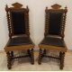 Coppia di sedie in legno di noce, gambe, traverse e montanti superiori lavorati a tortiglione, seduta e spalliera rivestita in stoffa. (lievi mancanze)