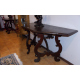Coppia di semitavoli a profilo ottagonale in legno di noce, sostegni a lira raccordati da traverse a voluta. Italia centrale, sec. XVIII. cm77x131x62 (restauri)