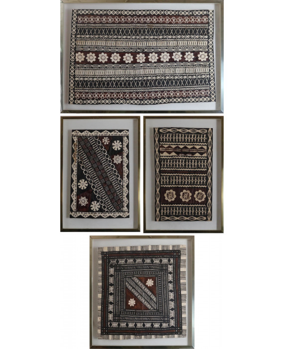Lotto di quattro tessuti policromi polinesiani, con cornici