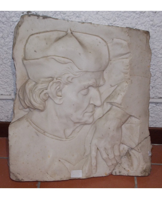 Bassorilievo in marmo bianco raffigurante profilo di Cristoforo Colombo.Italia, sec. XIX. cm52x46x8