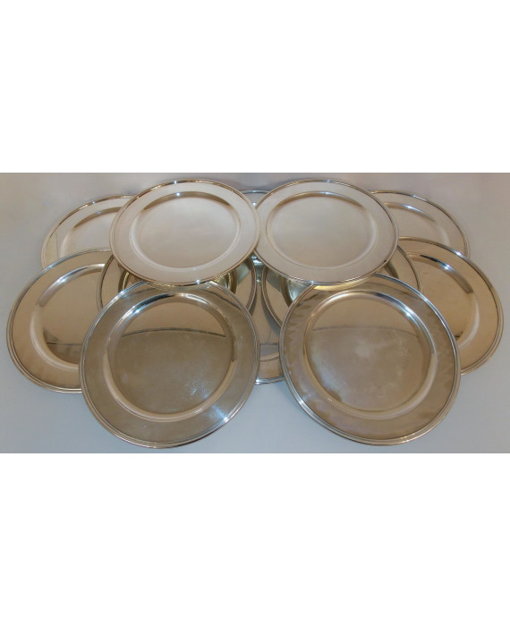 Set di dodici sottopiatti in argento 800. Diam. cm28. Peso tot. gr. 5150