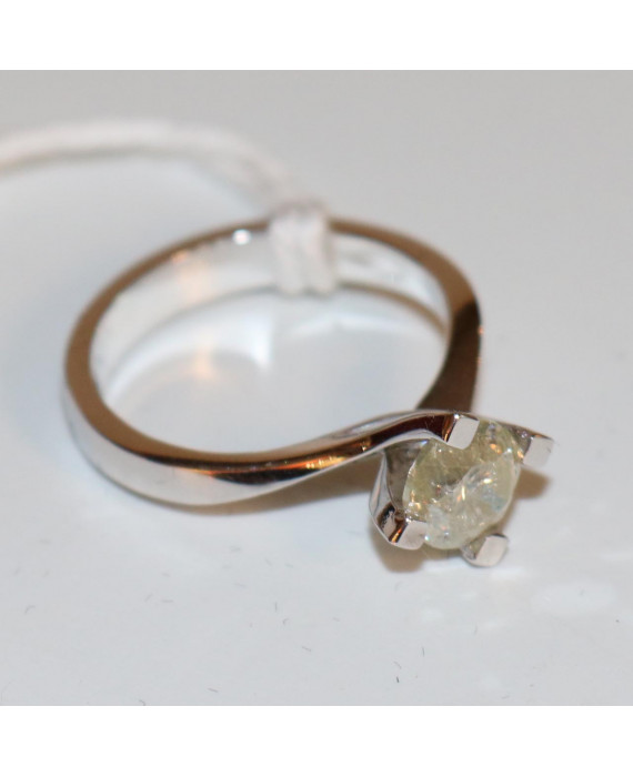 Anello solitario in oro bianco 18Kt con diamante taglio brillante P3/Mcolor. Peso gr. 4,5. Allegato certificato di autenticità del gemmologo Gianfranco Rotisciani