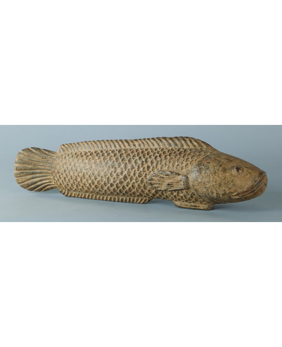 Carpa Koi in pietra scolpita e parzialmente dipinta. Antica manifattura giapponese. Lungh. cm66 (lievi dfietti)