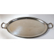 Vassoio ovale biansato in argento 800 con bordo decorato a palmette. cm63x38. Peso gr. 1550