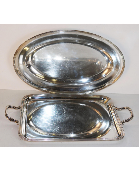 Lotto di due vassoi in argento 800: uno ovale con bordo scanalato ed uno rettangolare biansato. cm50x33/42x32 Peso tot. gr. 2770