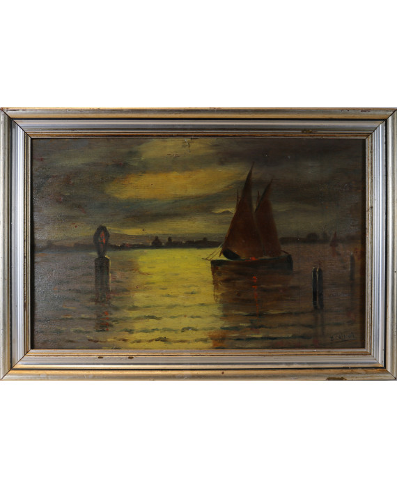 Marina con barca, con cornice