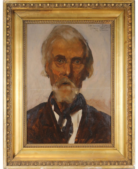 Signature firma T. Patini e dedica a Gaspare Vassallo in alto a destraTechnique: Olio su cartoneSize: cm 44x30