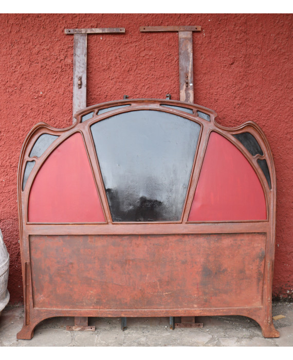 Letto ad una piazza e mezza in metallo verniciato, composto da testata, pediera e traverse laterali. Francia, inizi sec. XX