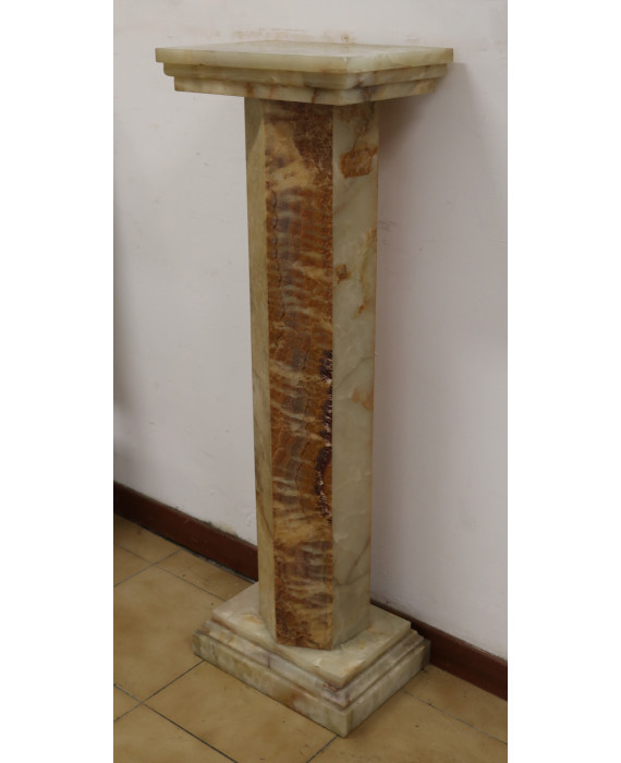 Colonna in onice con fusto esagonale, base e piano rettangolari. Alt. cm104 (lievi scheggiature)