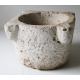 Grande ed antico mortaio in pietra bianca scolpita. Alt. cm23; Diam. cm32 (scheggiature ed usure del tempo)