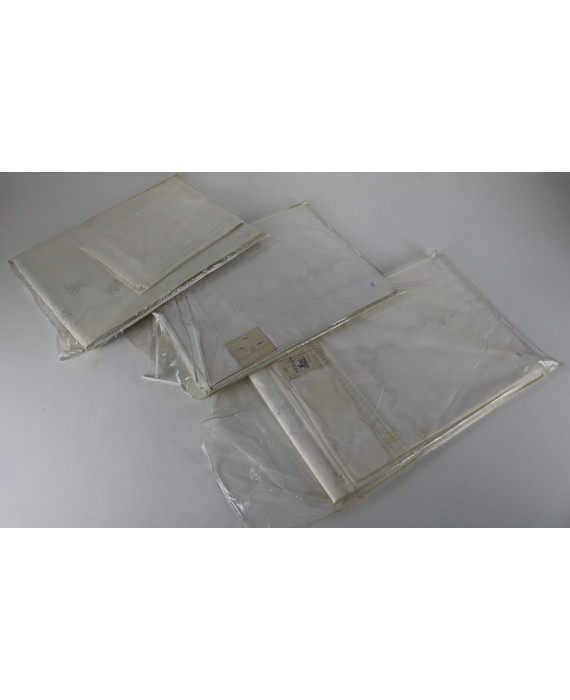 Lotto di tre lenzuola matrimoniali in cotone ricamato