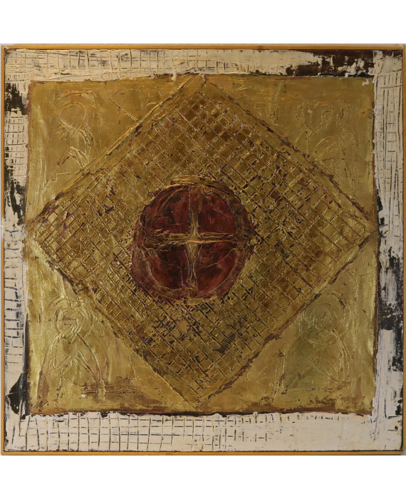 Signature monogramma e data in basso a sinistra, sul retro timbri e firmaTechnique: Tecnica mista su telaSize: cm 71x71