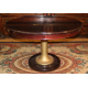 Tavolo estensibile impiallacciato in legno di mogano, fusto in metallo e base circolare. Alt. cm77; diam. cm118 (lievi difetti)