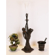 Lotto di tre oggetti: un mortaio con pestello in bronzo patinato, una composizione in giada raffigurante albero di mele ed una fioriera con base in antimonio patinato e lavorato con donne liberty e contenitore superiore in vetro inciso. Alt. cm10/24/65 (difetti e mancanze alla composizione in giada)