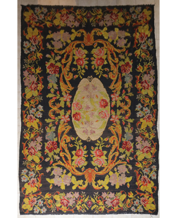 Tappeto Kilim (Caucaso) ad ornati floreali. cm373x214