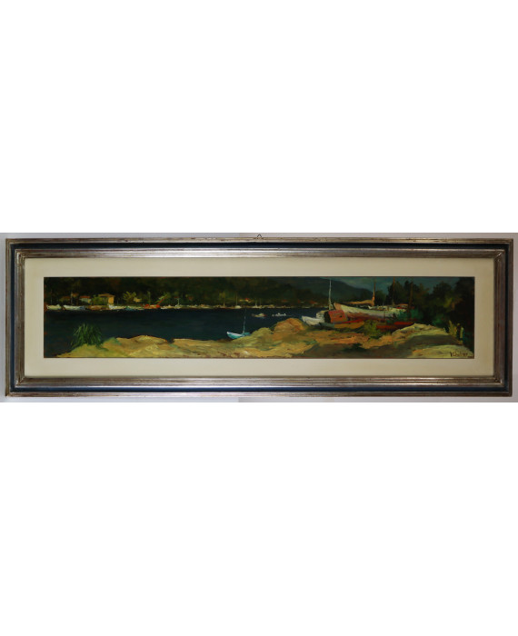 Signature firma in basso a destra, sul retro titolo e firmaTechnique: Olio su tavolaSize: cm 19x100