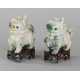 Coppia di calamai in giadeite scolpita con cani di pho su basi in legno traforato, sul fondo etichetta collezione Bulgari. Alt. cm14