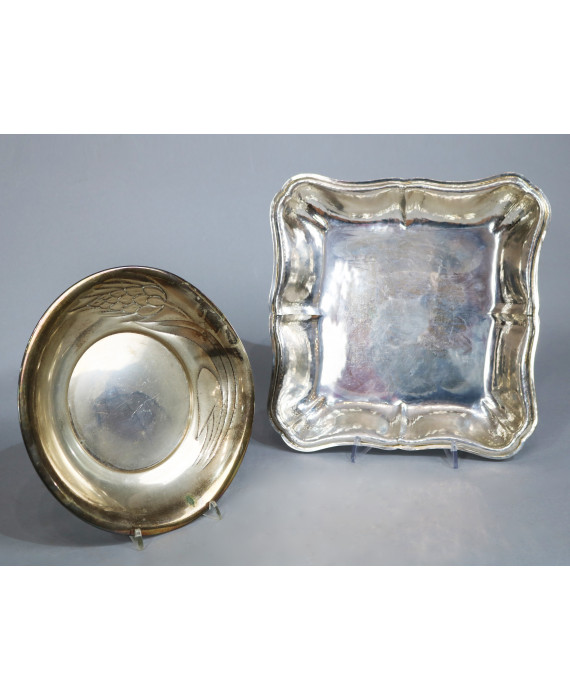 Lotto di due vassoi in argento 800. Peso tot. gr. 810