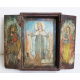 Teca a due sportellini in legno dipinto con all'interno immagini sacre di Santi e Madonna. Europa dell'est, sec. XIX. cm34x25x8 (difetti)