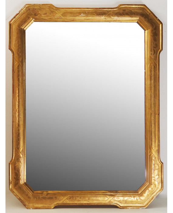 Specchiera in legno dorato ed inciso a volute vegetali. Italia, sec. XIX. cm88x71 (difetti alla doratura)