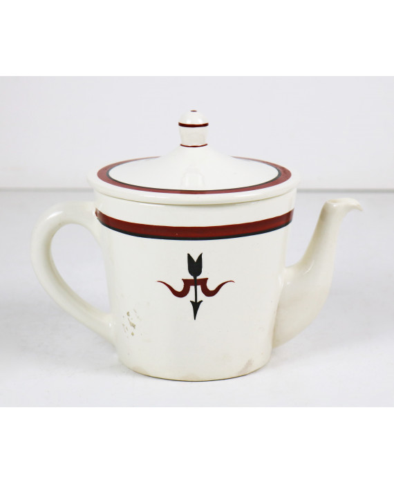 Caffettiera in terraglia a fondo bianco decorata in rosso e nero, design Giò Ponti per Richard Ginori S. Cristoforo Milano. Alt. cm18