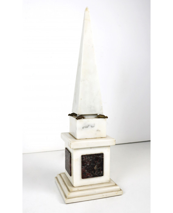 Obelisco in marmo bianco con inserti in diaspro di Sicilia. Alt. cm53