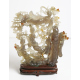 Gruppo in giada scolpita raffigurante divinità con fenicotteri, nembi e pagode. Cina, sec. XX. Alt. cm25