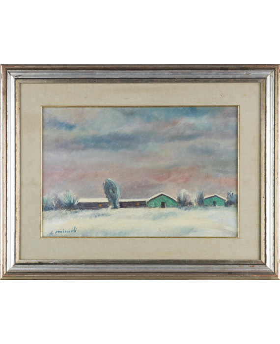 Baracche e neve, 1973, con cornice