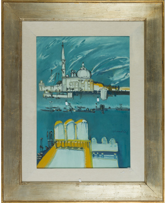 Scorcio Venezia, con cornice. Allegata autentica su foto dell'artista e timbro della Galleria d'Arte Pontevecchio