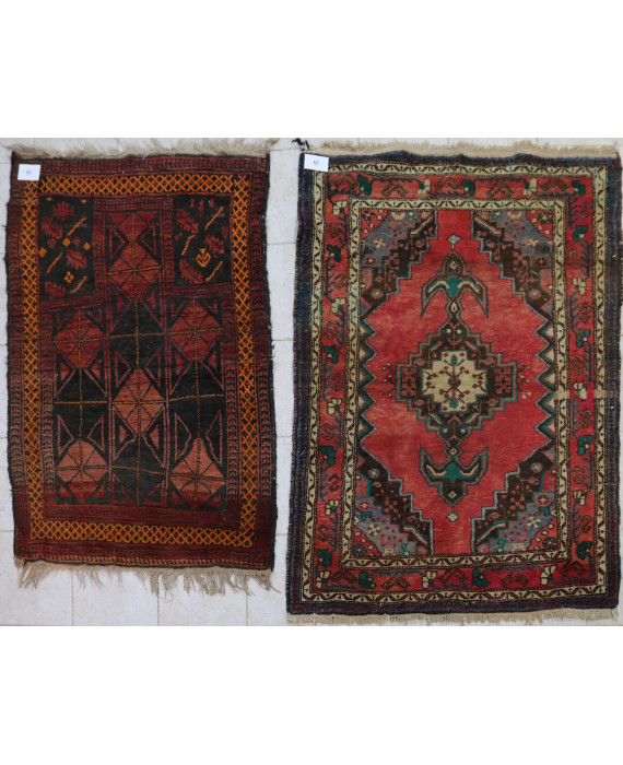 Lotto di due tappeti: un Beluchi ad ornati geometrici ed un Hamadan ad ornati floreali. cm130x92/145x110 (usure ad uno)