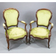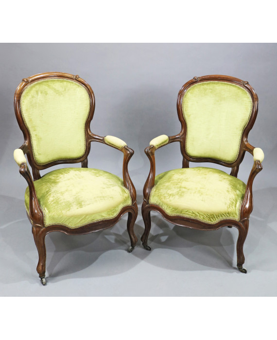Coppia di poltrone in legno di noce con seduta e spalliera rivestite in velluto. Italia, periodo Luigi Filippo
