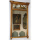 Specchiera in legno dorato, colonnine laterali scanalate terminanti con capitelli intagliati, specchio superiore dipinto in oro con rudere e personaggio. Italia, sec. XIX. cm106x60 (rotture al vetro dipinto)