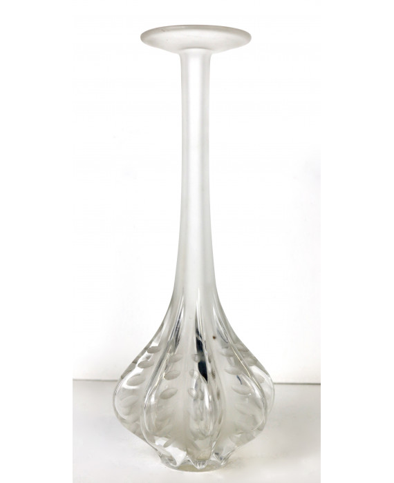 Bottiglia in cristallo di Lalique modello Marie Claude con sagoma costolata e alto collo, anni 60. Alt. cm 34