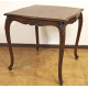 Tavolo quadrato in legno di noce con piano impiallacciato in radica di tuja, quattro gambe mosse. cm75x75x77