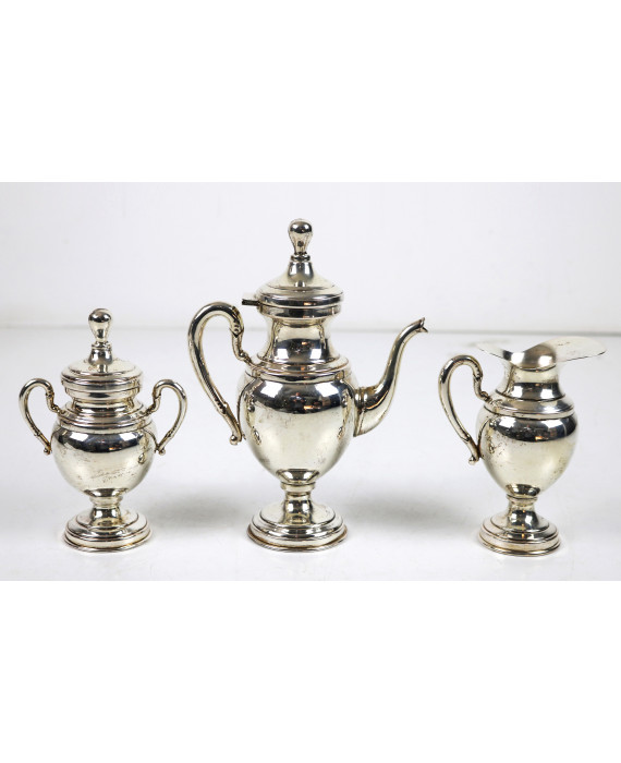 Lotto di una caffettiere, una zuccheriera ed una lattiera in argento 800. Peso tot. gr.450