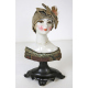 Busto di gentildonna in porcellana con cappello ed abiti in tessuto, poggiante su piedistallo. Alt. cm31