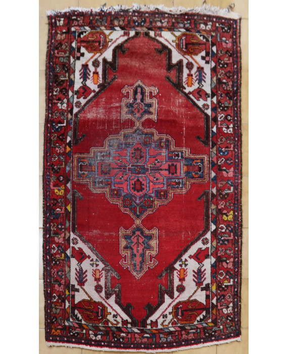 Tappeto Hamadan ad ornati geometrici. cm195x128 (usure)