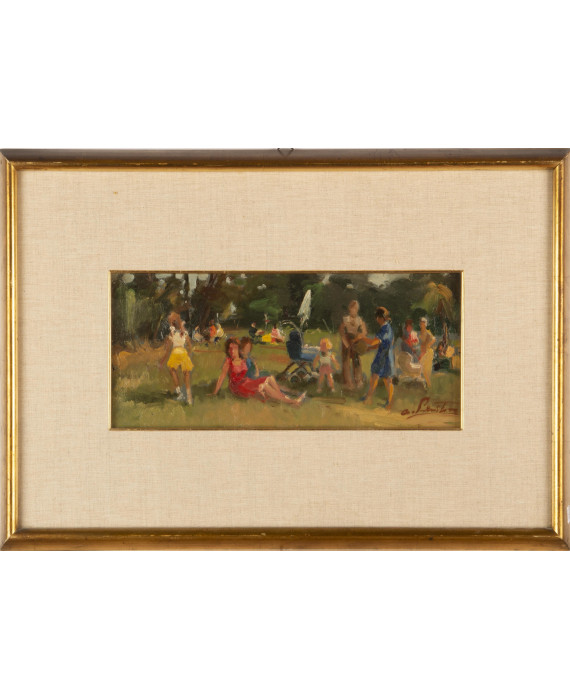 Signature firma in basso a destra, sul retro dedica, firma e dataTechnique: Olio su cartoneSize: cm16x38
