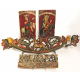 Lotto di quattro elementi di carretto siciliano: una coppia di tavole dipinte con re e regina a cavallo, e due fregi intagliati e traforati con personaggi, volute e fiori. cm40x22(2); lungh. cm90/34