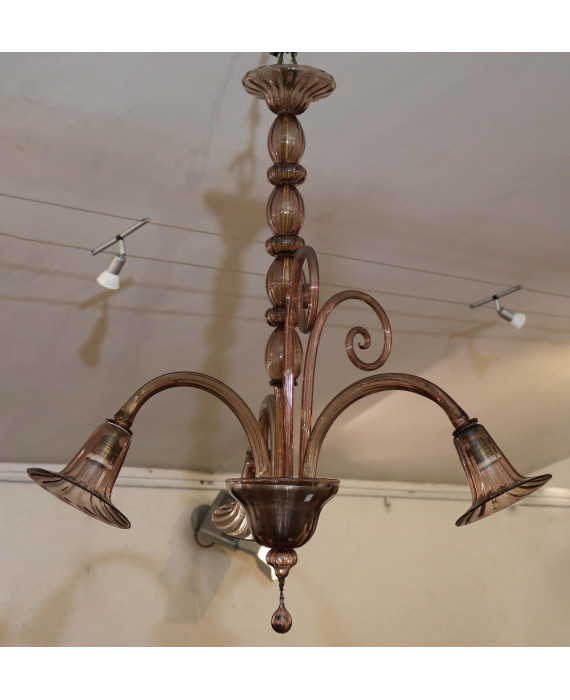 Lampadario a tre luci in vetro di Murano color melanzana (mancante di un elemento e lievi difetti))