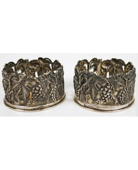 Coppia di sottobottiglie in argento 900, lavorati a tralci d'uva. Peso gr. 460