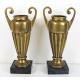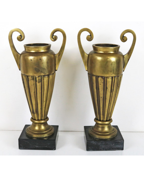 Coppia di vasi biansati in bronzo su basi in marmo nero. Italia, periodo Deco'. Alt. cm50