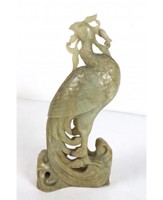 Fenice in giada scolpita e traforata. Cina, inizi sec. XX. Alt. cm29 (lievi scheggiature)