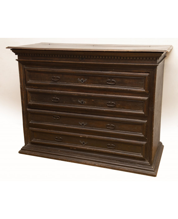 Canterano in legno di noce, piano superiore apribile con vano interno, quattro cassetti inferiori. Italia, sec. XVII. cm121x164x72 (sostituzioni)