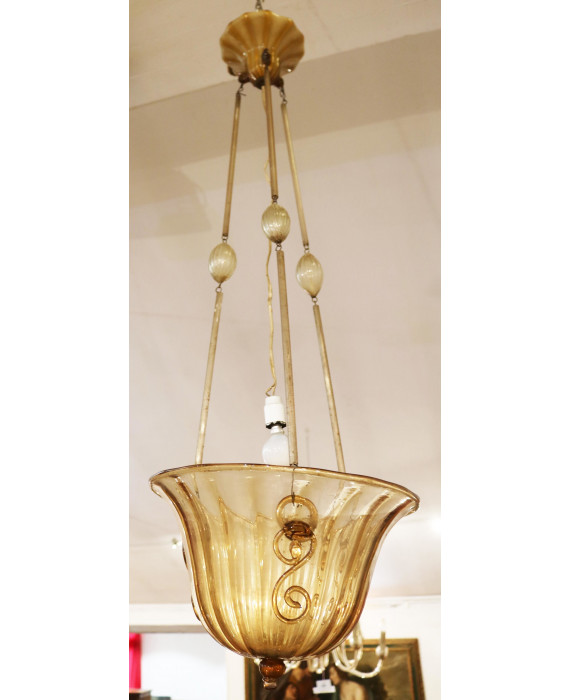 Lampadario a sospensione ad una luce in vetro ambra di Murano (difetti)