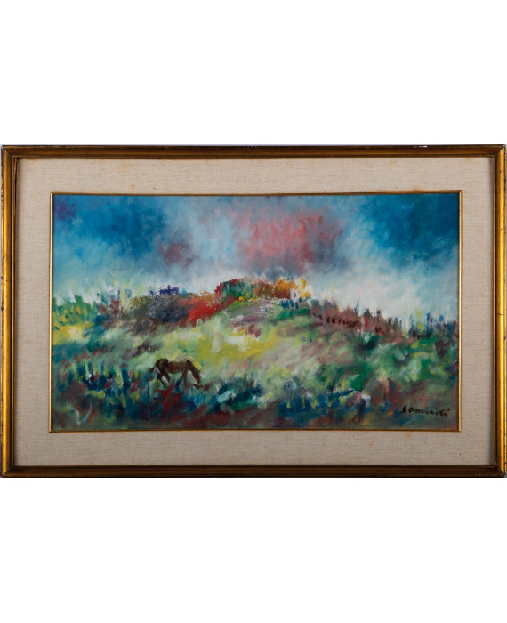 Signature firma in basso a destra, sul retro firma per autentica dell'autore e dedicaTechnique: Olio su cartoneSize: cm34x60