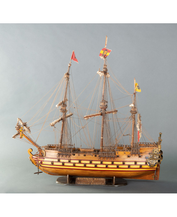 Modellino di veliero in legno a tre alberi. Lungh. cm90 (difetti)