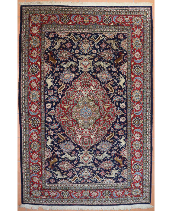 Tappeto Kum ad ornati geometrici e faunistici. cm268x157 (lievi difetti)